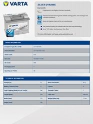 12V 780CCA(EN) 140RC VARTA FLD SILVER DYNAMIC DIN66H SAE 0 278MM X 175MM X 190MM
