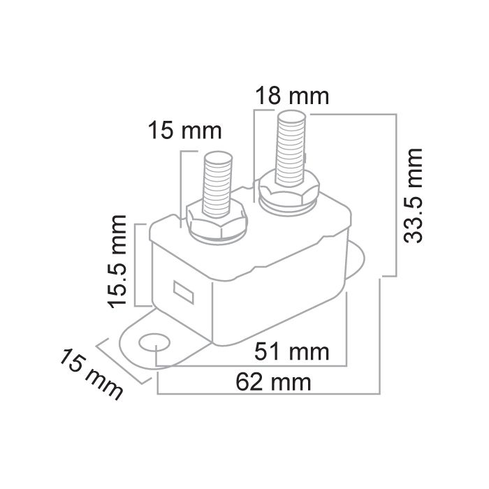 15A MAN. RESET CIRCUIT BREAKER 12/24V STUD STYLE PLASTIC CASE