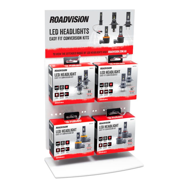 Counter Merchandiser Stand Roadvision LED Headlight Kits Incl. Easy Fit H4 H7 H11 HB3