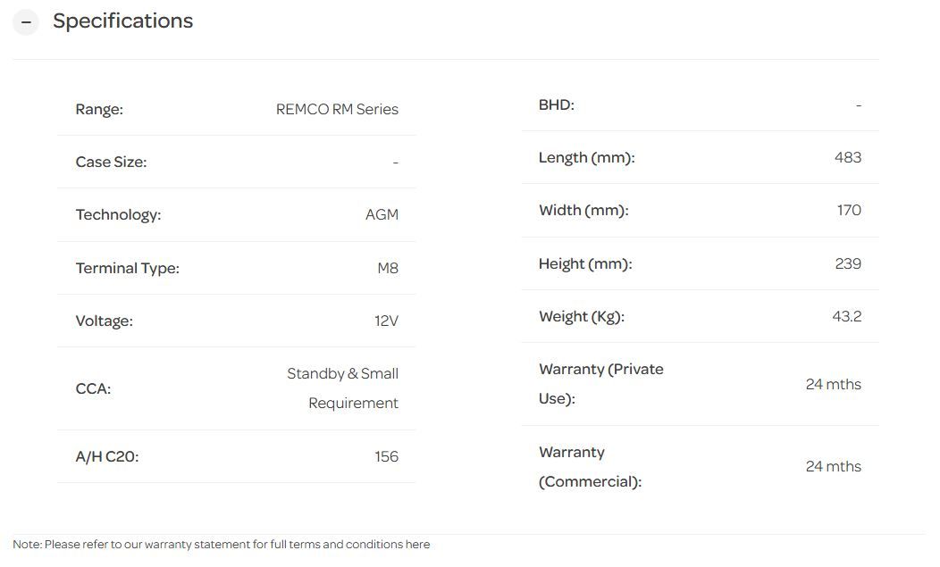 12V 156AH REMCO AGM